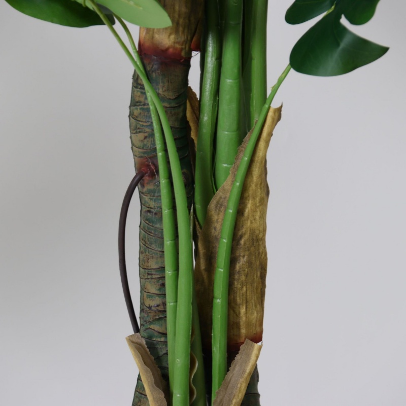 To meet the needs of different commercial spaces, this high-simulation artificial monstera plant also supports customization. Hotel lobbies can opt for a 2.5–3 meter version with a metal base for grandeur, while restaurants and cafés can choose a 1.8-meter version to create atmosphere without taking up too much space. Leaf colors are also customizable—deep green fits vintage-style spaces, while lighter green complements modern minimalist interiors.